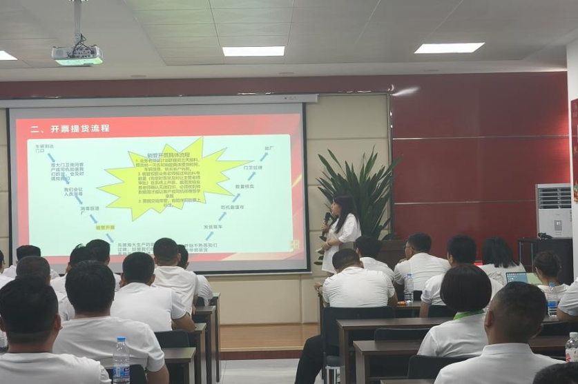 其次由銷售內勤穆曉英,張曉梅老師對日常提貨流程及上半年績效數據做了公布。